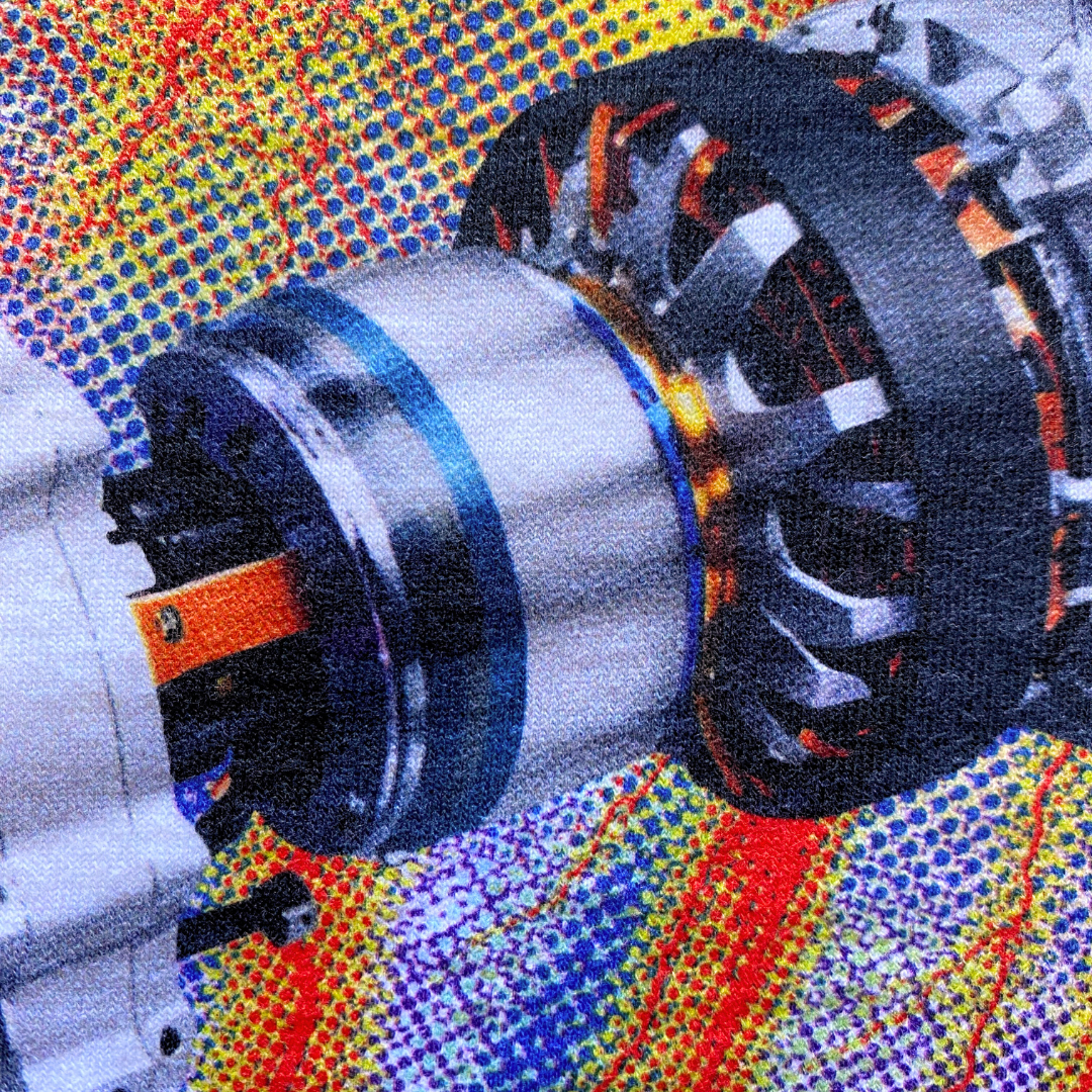 Hang dry / tumble dry low to preserve art